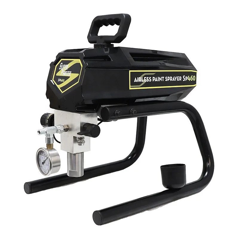 Окрасочный аппарат SP-460 безвоздушного распыления с механическим управлением давления. Он распыляет высоковязкие материалы, высококачественные интерьерные краcки, фасадные краски.